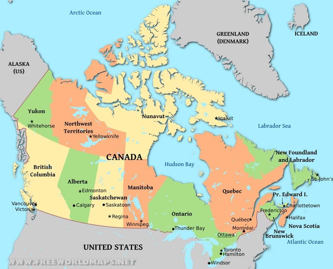 Political map of Canada